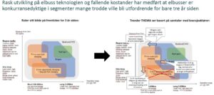Resultater viser at det er relativt liten forskjell i kostnadene mellom busser på el og biogass. Biogass kommer best ut på busser som ikke skal kjøre så mye pga. lave investeringskostnader. El kommer best ut på busser som skal kjøre mye pga. lave drivstoffkostnader. Det forutsetter imidlertid at investeringer i ladeinfrastruktur for elbusser tilbakebetales over betydelig lengre tid enn kontraktperioden for busselskapet.